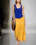 Victoria Beckham created for this spring collection a soft fluid shapes which have a covetable ease to them. Soft pleated silk skirts and flowing culottes in a red, brown and mid blue check have been edged with a chiffon boarder around the bottom. We present the full gallery of show.