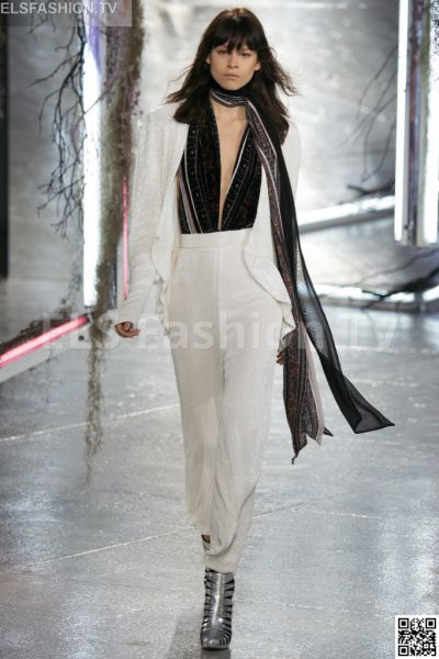 Rodarte created this collection inspired by the Mulleavy sisters’ passion for poetry, and its lyrical, mysterious and fascinating language. Dominant colors are the silver, burgundy, gold, white, black, ivory, powder blue, salt and pepper, cyclamen, dusty rose, mauve and rust. Materials used are silk, lamé, glitter, leather, lace, velvet, beads, embroidery, shearling, fur, lurex, fringes, chiffon and cloth. We present the full gallery of show.