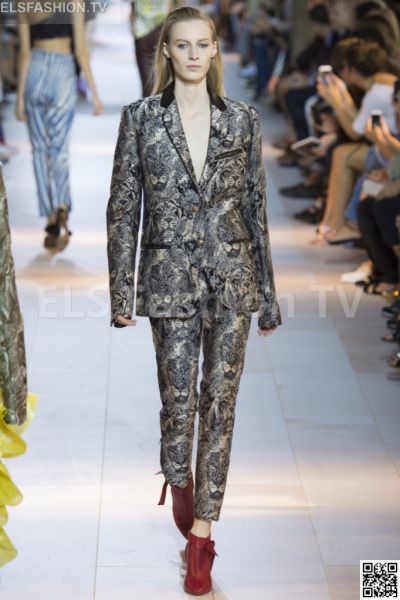 Roberto Cavalli designed its collection with dominant colors yellow, turquoise, blue, peach, nude, terracotta. Materials: denim, leather, jersey, chainmail, brocade, chiffon, knitwear, cotton, suede, tulle, taffetà and silk. Lengths: above the knee and floor length. We present the full collection.