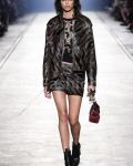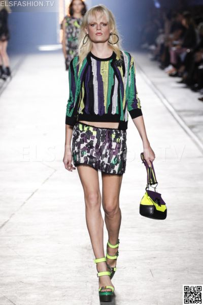 Versace designed its collection with dominant colors green army, kaki, black, neon green, bordeaux. Materials: Jersey, cotton, silk, leather, wool, sneak, denim, chiffon, tulle, crystals. Lengths: mini and long. We present the full collection.